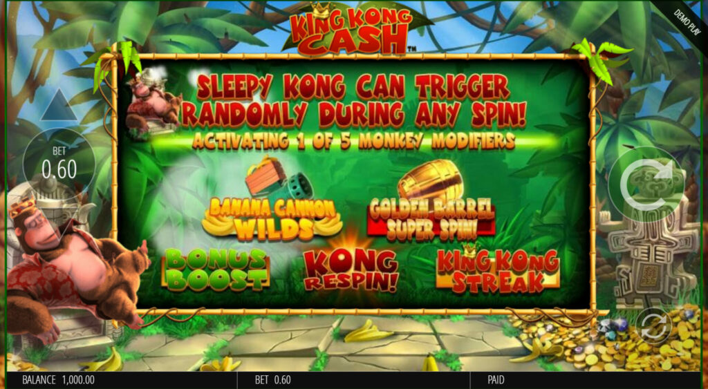 The bonus features in King Kong Cash are plentiful and add an exciting twist to the gameplay. Here are the most notable: